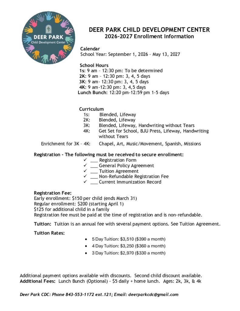 The mission of Deer Park Child Development Center is to support families with preschoolers and young children by providing a loving and nurturing environment for learning. Our goal is for our staff to make each child feel loved, to teach a curriculum that guides your child, and to help create memories that will follow your child.