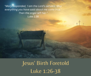 You are invited to join us each Sunday as we express our love to the Lord through singing, giving, and teaching the Bible. During the month of December, we will be looking at different passages from the Bible that teach about the coming of Jesus Christ.