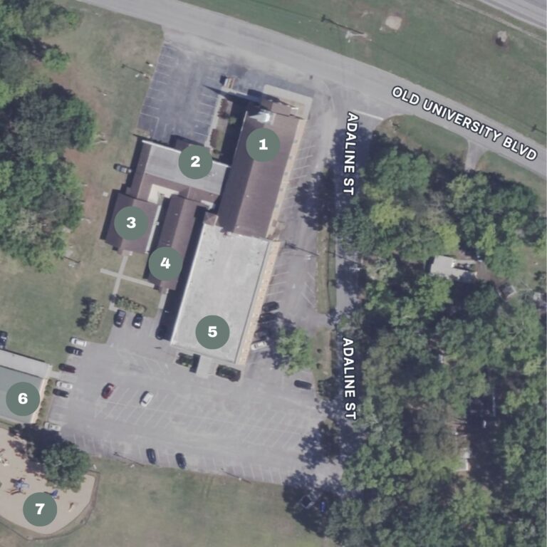 Back Lot (Best Option): The largest parking area is behind the church, closest to the Fellowship Hall, Church Office, and Education Building. This is the best place for families to park, as it provides easy access to children’s classrooms and check-in areas.
